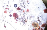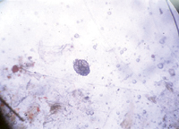 Foto 1: Huevos de Sarcoptes scabiei en un raspado de piel.