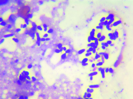 a) Otitis supurativa por Malassezia sp.