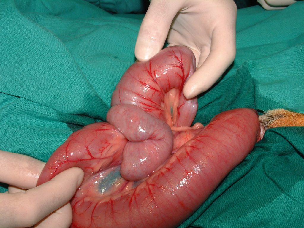 2. Cuando no es posible la reducción de la intususcepción o las lesiones intestinales son irreversibles se tiene que realizar la enterectomía de las asas afectadas.