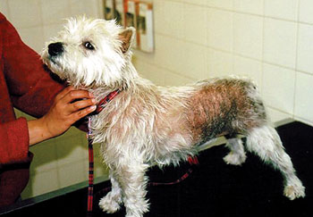 Pumuky es un shit-zu, macho castrado, de tres años de edad, correctamente desparasitado y vacunado, que vive con otra perra de la misma raza.  La hija de la propietaria ha ido a visitar a su madre con su perro mestizo de cuatro años de edad y ha peleado con Pumuky, con el resultado que están viendo en la imagen y el consiguiente disgusto y preocupación de su dueña. Acude inmediatamente a su centro veterinario en donde los veterinarios proceden con celeridad a instaurar el tratamiento.