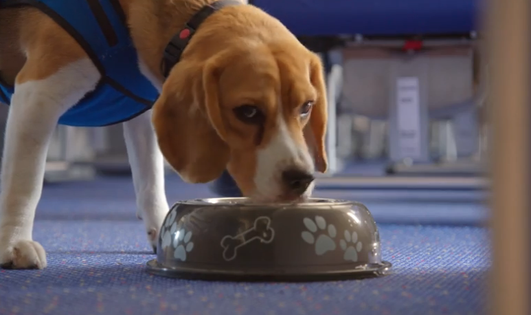 El sabueso fue entrenado para buscar a los dueños de objetos perdidos en los aviones y el área de espera Un pequeño sabueso se ha…