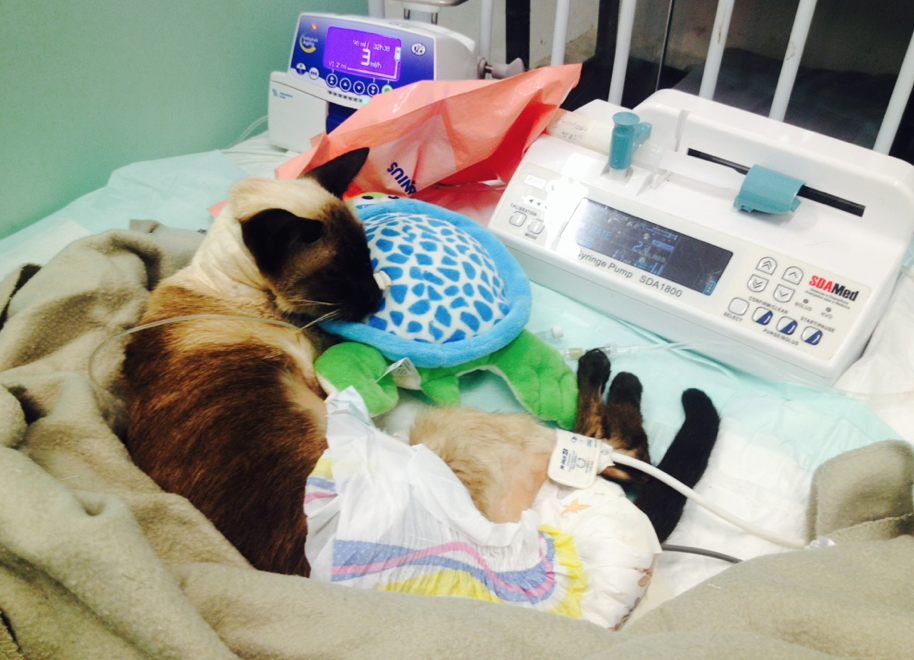 Una gata, de 6 años de edad y 2,5 Kilos se presenta a cuidados intensivos después de una cirugía de piometra. El paciente ya está…